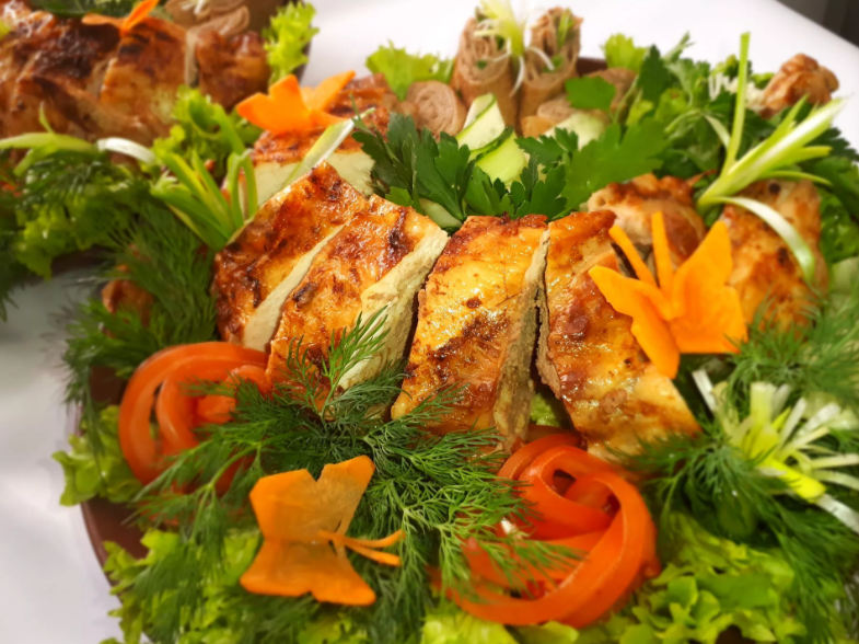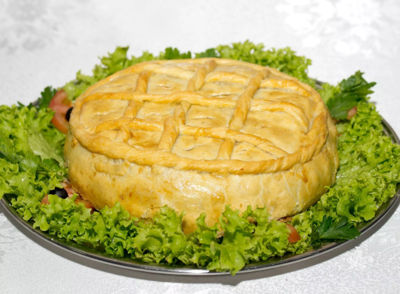 Тесто слоеное, блины, курица, огурец соленый, яйцо куриное,